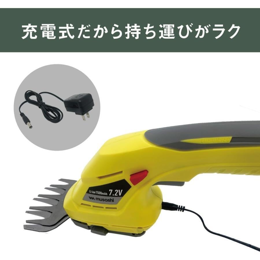 ムサシ(MUSASHI) おてがる2WAYバリカン バリカン&ヘッジトリマー コードレス 充電式 小型 軽量 剪定 草刈り 雑草 芝生 ワンタッチで付替可能 QP-170