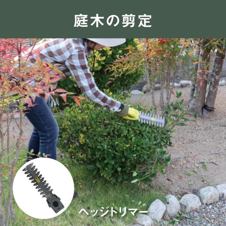 最大切断能力:8mm (ヘッジトリマー)連続使用時間:約50分本体材質:ABS樹脂、エラストマー樹脂